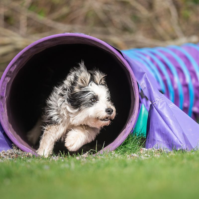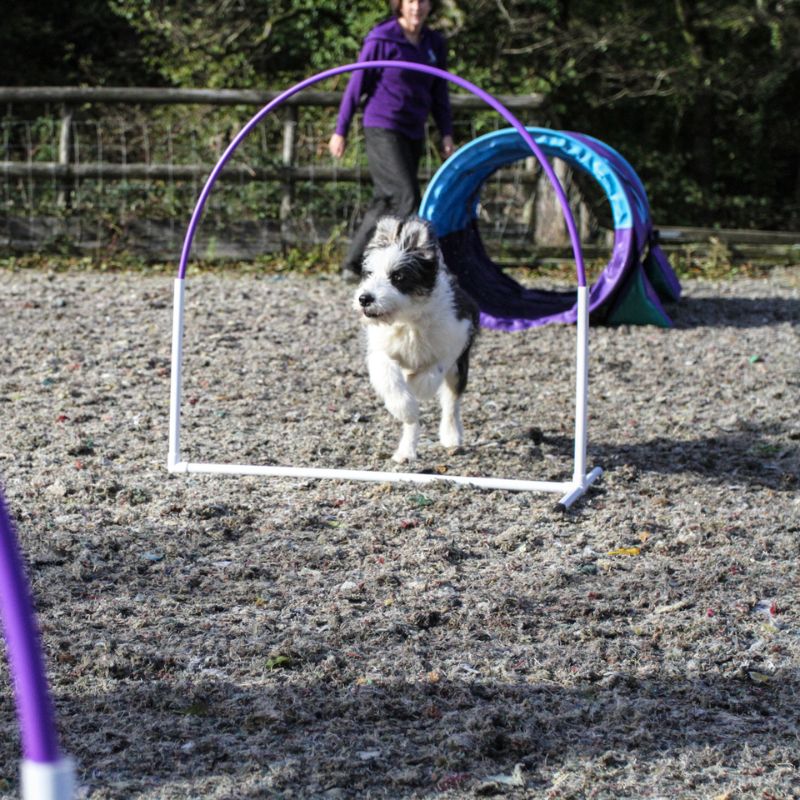 Hoopers – ideal for dogs and owners of all ages and fitness levels. Dogs navigate a course of hoops, barrels and tunnels with the emphasis on distance. Courses are flowing and don’t involve tight turns – making it accessible for pups and oldies alike!